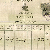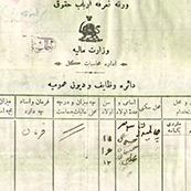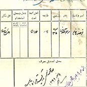 برگههای تعرفه حقوق فاطمه سلطان خانم (دختر میرزا فرج الله لشکر نویس و همسر میرزا سید کاظم خان اشراق السلطنه از طایفه میر فخرایی) و ربابه خانم نصرت السادات (دختر میرزا سید کاظم خان اشراق السلطنه)